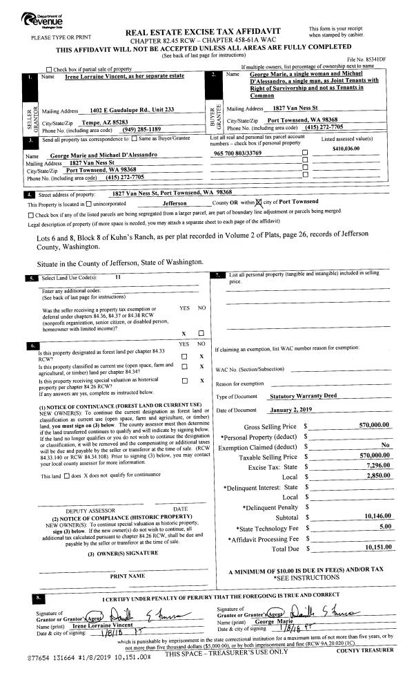 | Mailing Address: | 2029 SPRUCE ST PORT TOWNSEND, WA 98368-2719 | % Ownership: | 100.0000000000% |