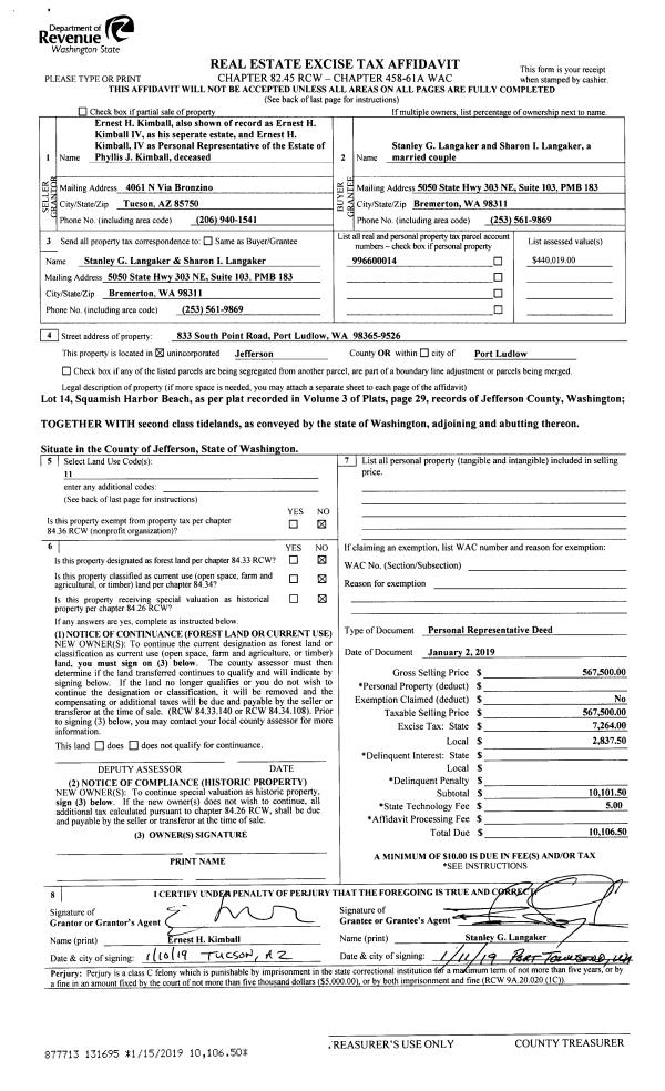 | Mailing Address: | 2211 SPRUCE ST PORT TOWNSEND, WA 98368-2705 | % Ownership: | 100.0000000000% |