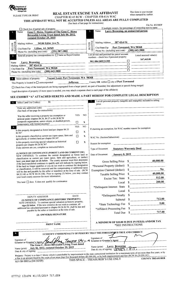 | Mailing Address: | SHELLEY R FRENCH 2204 SPRUCE ST PORT TOWNSEND, WA 98368-2706 | % Ownership: | 100.0000000000% |