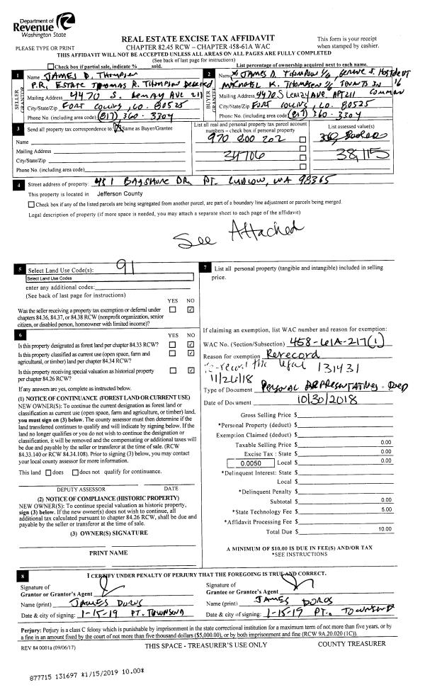 | Mailing Address: | JAMES A HENWOOD 1319 V ST PORT TOWNSEND, WA 98368-2738 | % Ownership: | 100.0000000000% |