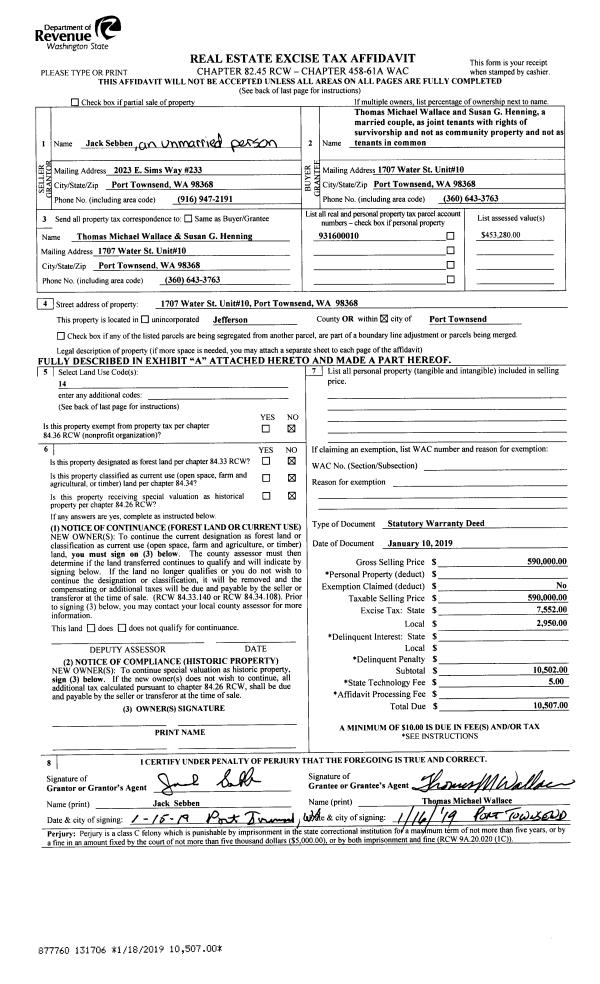 | Mailing Address: | 1840 ROSEWOOD ST PORT TOWNSEND, WA 98368-3303 | % Ownership: | 100.0000000000% |