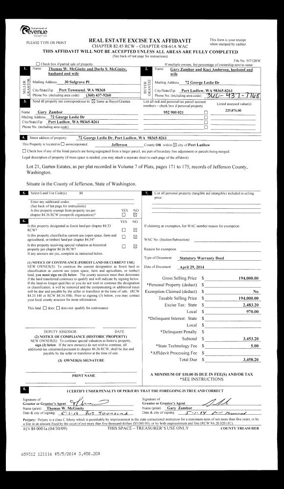 | Mailing Address: | 1840 ROSEWOOD ST PORT TOWNSEND, WA 98368-3303 | % Ownership: | 100.0000000000% |