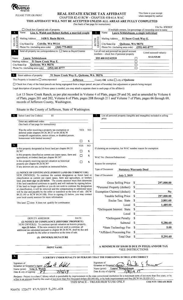 | 5 | 04/18/1996 | SWD | Statutory Warranty Deed | ALK, JOAN | BREVIK, JAY C/SCHUMACHER, JES | 0 | 0 | $185,000.00 | 79342 | 0 |