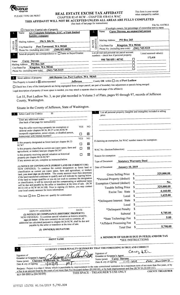 | Mailing Address: | 1228 V ST PORT TOWNSEND, WA 98368-2742 | % Ownership: | 100.0000000000% |