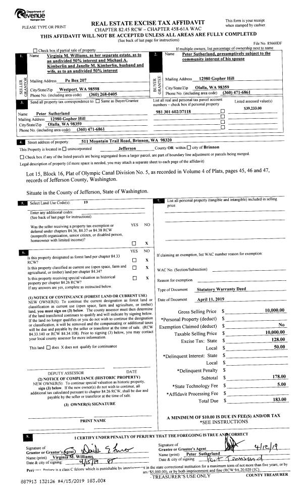 | Mailing Address: | 936 M ST PORT TOWNSEND, WA 98368-4060 | % Ownership: | 100.0000000000% |