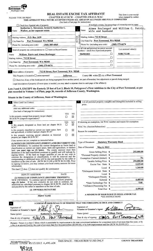| 1 | 03/26/2015 | SWD | Statutory Warranty Deed | WENDY BRATZEL | LEWIS & MARJORIE BELL | | | $264,600.00 | 123016 | |