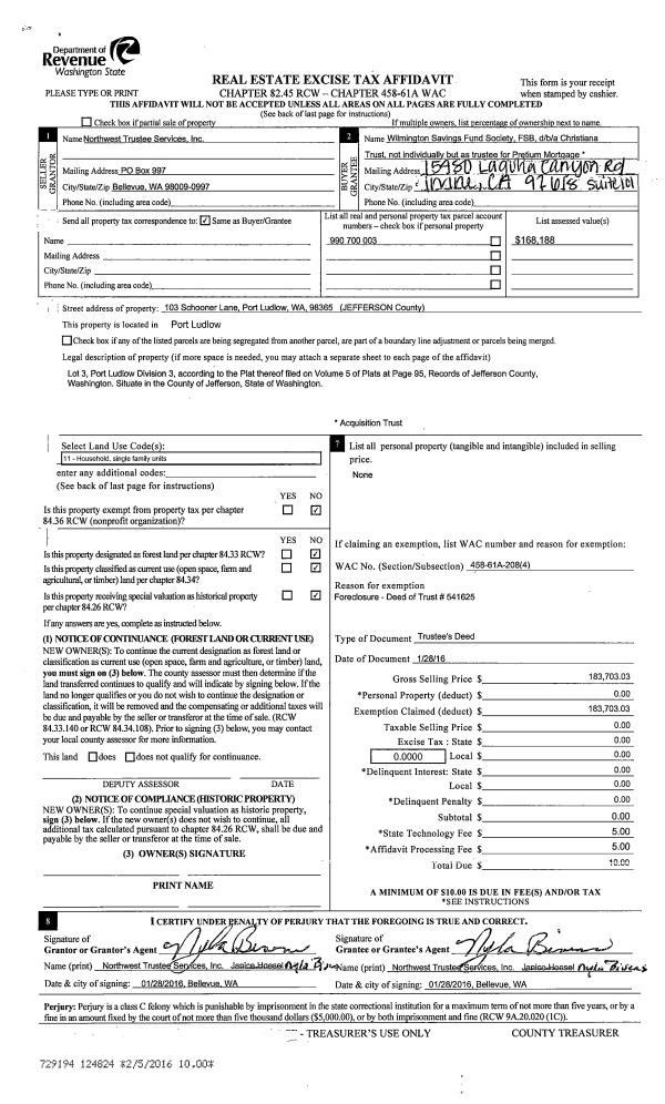 | Mailing Address: | 615 W ST PORT TOWNSEND, WA 98368-3543 | % Ownership: | 100.0000000000% |