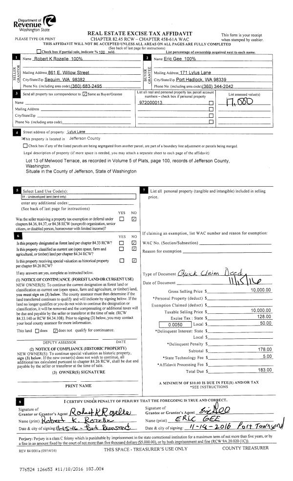 | Mailing Address: | LESLIE FREEMAN 222 R STREET PORT TOWNSEND, WA 98368 | % Ownership: | 100.0000000000% |