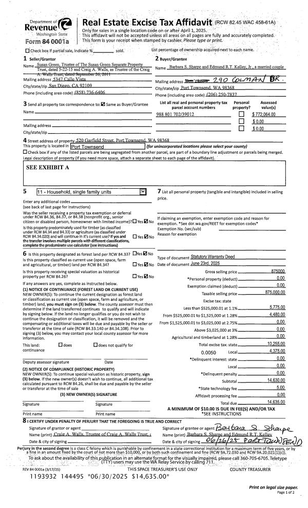 | Mailing Address: | JEAN A MARZAN TRUSTEE MARZAN FAMILY TRUST PO BOX 984 PORT TOWNSEND, WA 98368-0007 | % Ownership: | 100.0000000000% |