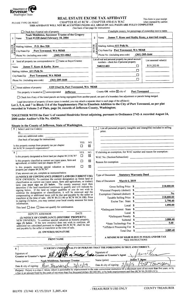 | Mailing Address: | 2203 EBONY ST PORT TOWNSEND, WA 98368-2704 | % Ownership: | 100.0000000000% |