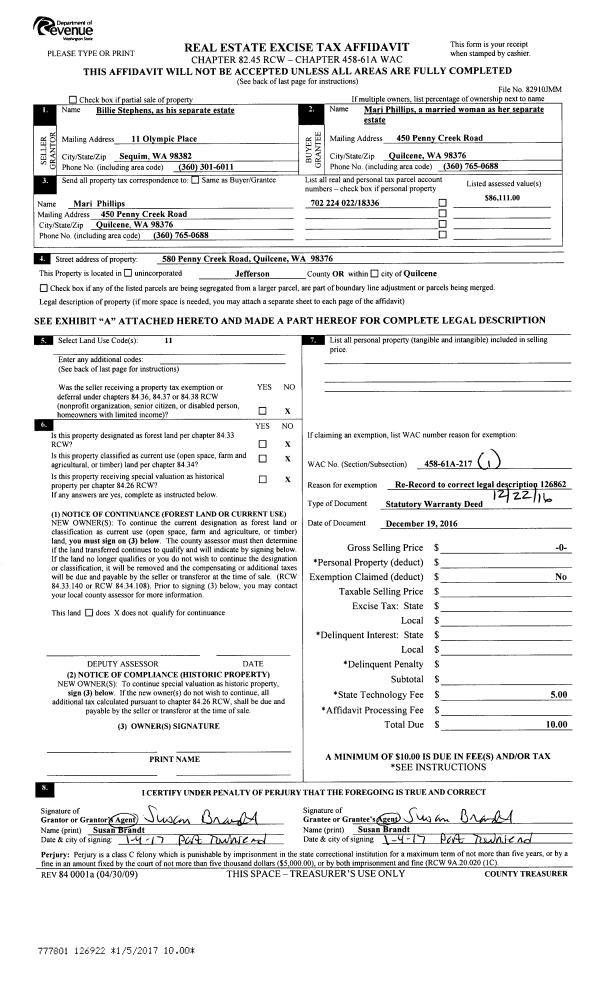 | 1 | 08/03/2017 | SWD | Statutory Warranty Deed | MURIEL S SEVERNS | AARON TRENOR | | | $334,900.00 | 128305 | |