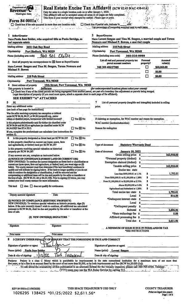 | Mailing Address: | 2315 EBONY ST PORT TOWNSEND, WA 98368-2718 | % Ownership: | 100.0000000000% |