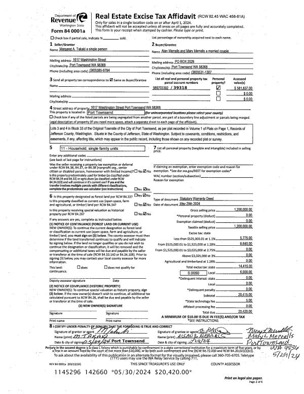 | Mailing Address: | 142 N MAPLE ST PORT HADLOCK, WA 98339-9615 | % Ownership: | 100.0000000000% |