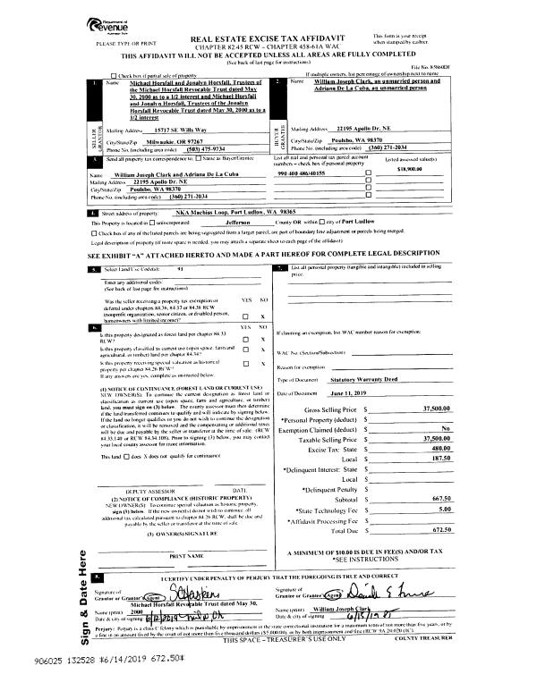 | Mailing Address: | CANDACE N MUSTATIA CLARK 31 2ND ST PORT HADLOCK, WA 98339-9501 | % Ownership: | 100.0000000000% |