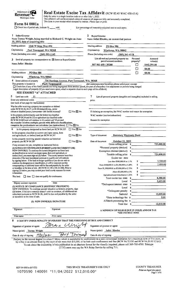 | Mailing Address: | 1240 W SIMS WAY PMB 227 PORT TOWNSEND, WA 98368 | % Ownership: | 100.0000000000% |