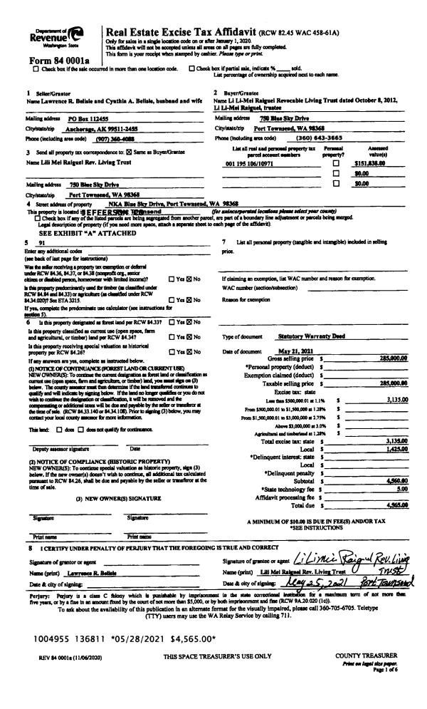 | Mailing Address: | LI YING LI TRUSTEE 92 2ND AVE PORT HADLOCK, WA 98339 | % Ownership: | 100.0000000000% |