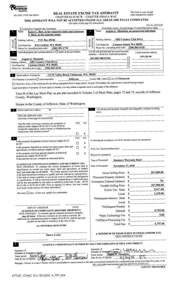 | Mailing Address: | JESSICA R WEDMORE 1515 MCPHERSON ST PORT TOWNSEND, WA 98368-8221 | % Ownership: | 100.0000000000% |
