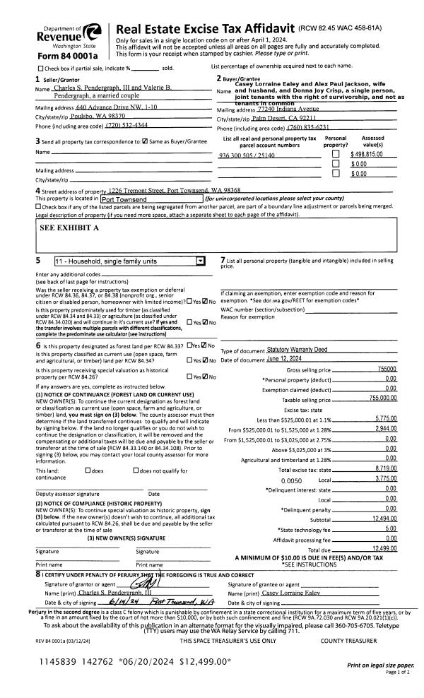 | 1 | 11/15/2024 | LEASE | Lease or Assignment of Lease | SALISH COAST HOUSING, LLC | AUDREY BREMICKER | | | | 0 | AF#668831 GRND LEASE |