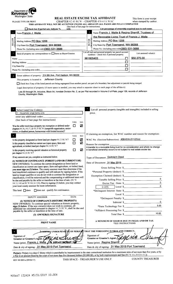 | 1 | 09/13/2019 | QCD | Quit Claim Deed | | | | | | 133140 | |
