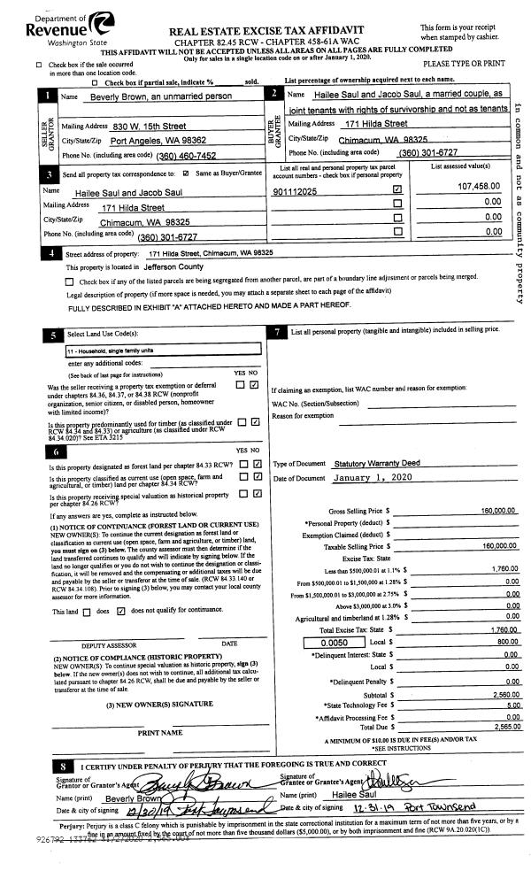 | Mailing Address: | 2455 JEFFERSON ST PORT TOWNSEND, WA 98368-4634 | % Ownership: | 100.0000000000% |