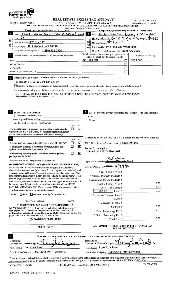 | Mailing Address: | 31 W WILDWOOD LN BRINNON, WA 98320-9701 | % Ownership: | 100.0000000000% |