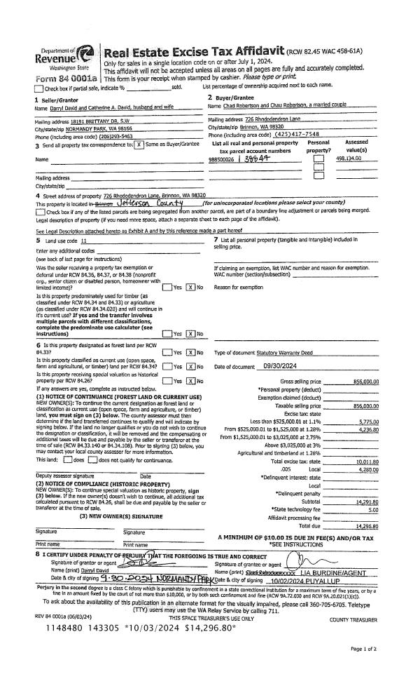 | Mailing Address: | 740 TYLER ST PORT TOWNSEND, WA 98368-6538 | % Ownership: | 100.0000000000% |