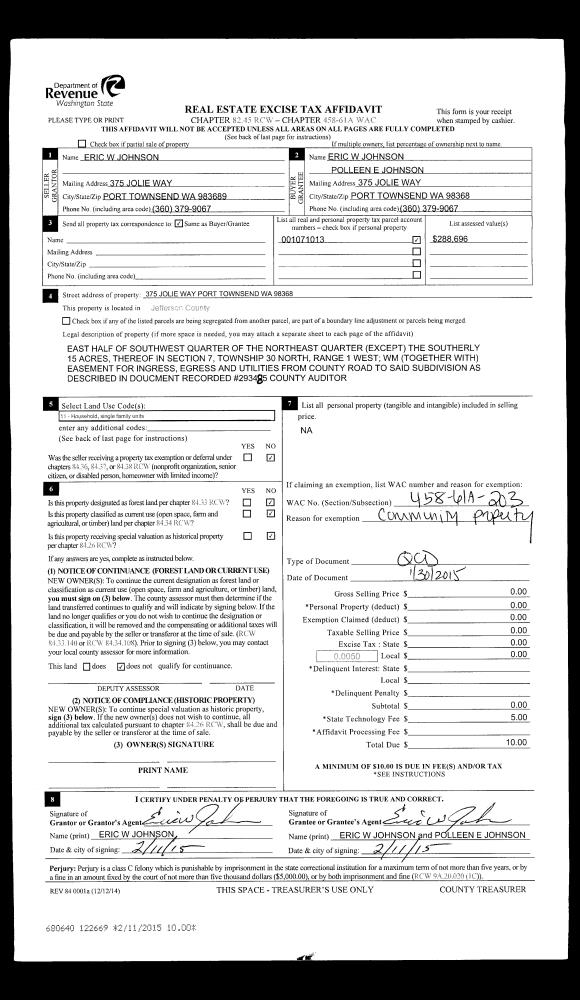 | Mailing Address: | 907 PIERCE ST PORT TOWNSEND, WA 98368-8046 | % Ownership: | 100.0000000000% |