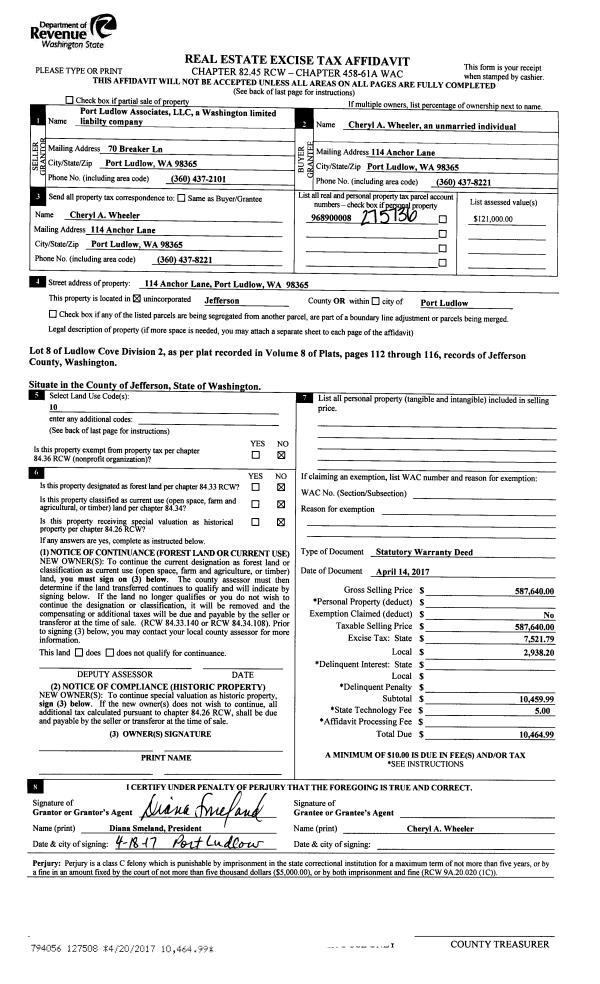 | Mailing Address: | JAMES W VAN BEMMEL 640 LINCOLN ST PORT TOWNSEND, WA 98368-5518 | % Ownership: | 100.0000000000% |