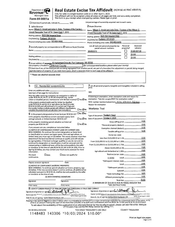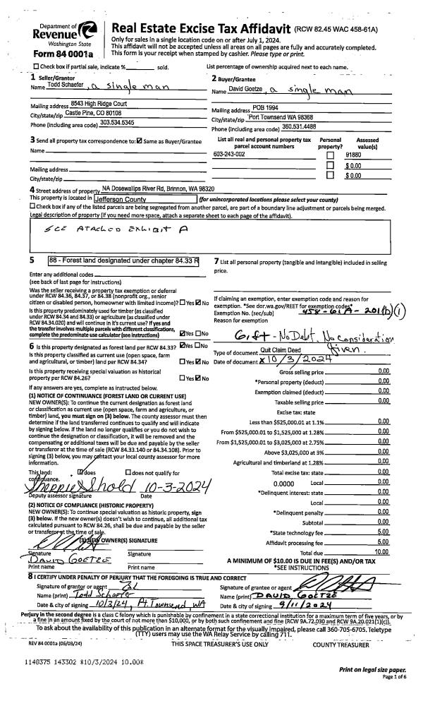 | 4 | 06/09/1993 | QCD | Quit Claim Deed | ANDERSON, ROBERT E JR/JUD | ANDERSON, ROBT/JUDITH TRUST | 0 | 0 | $0.00 | 71390 | 0 |