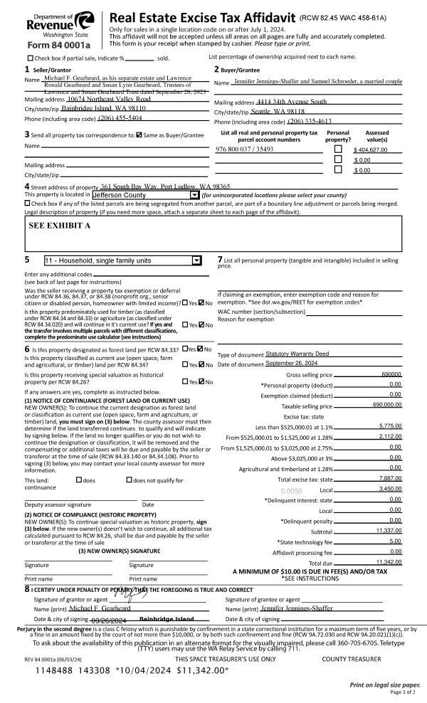 | Mailing Address: | LAURIE A & WILLIAM J MATTINSON TRUSTEES 820 TYLER ST PORT TOWNSEND, WA 98368-6540 | % Ownership: | 100.0000000000% |