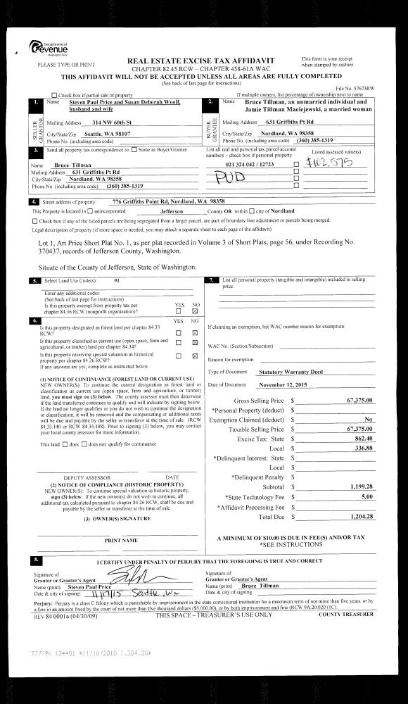 | Mailing Address: | 1729 JEFFERSON ST PORT TOWNSEND, WA 98368-8129 | % Ownership: | 100.0000000000% |