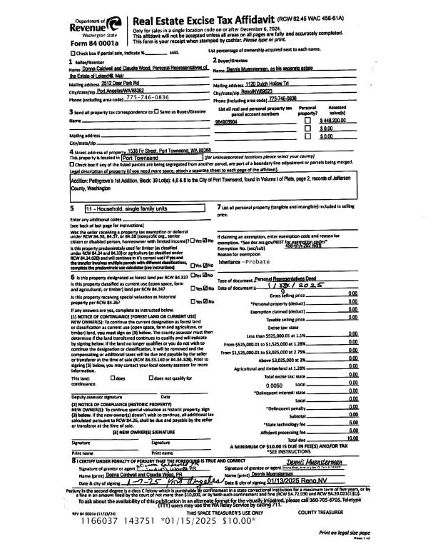 | Mailing Address: | JACQUELINE K ASSE 929 MADISON ST PORT TOWNSEND, WA 98368-4417 | % Ownership: | 100.0000000000% |