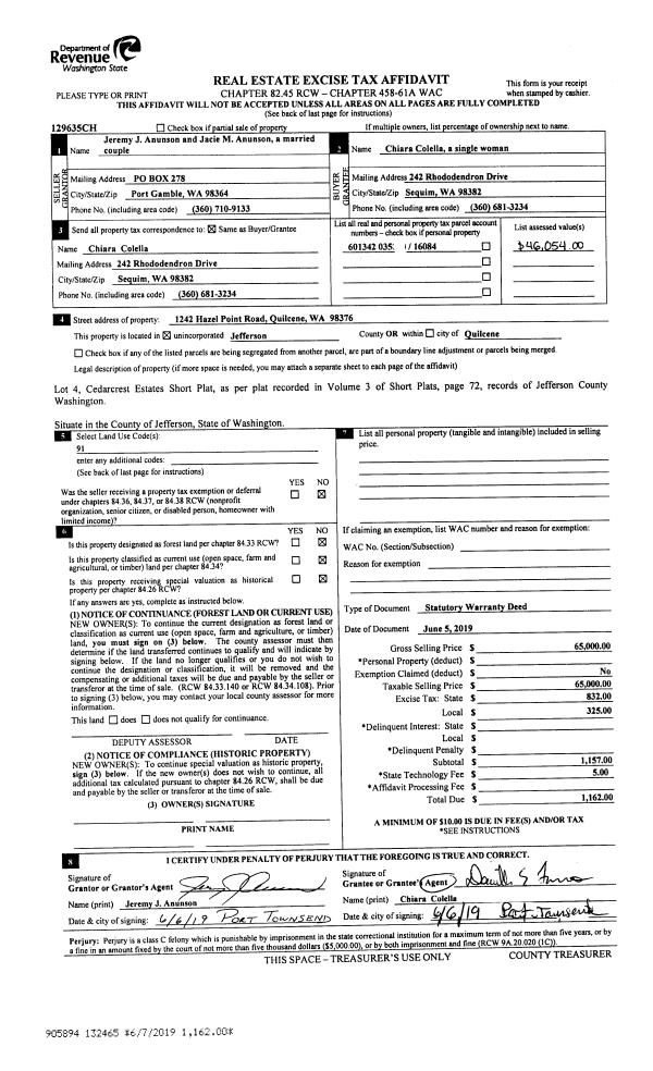 | Mailing Address: | 1835 EDDY ST PORT TOWNSEND, WA 98368-5954 | % Ownership: | 100.0000000000% |