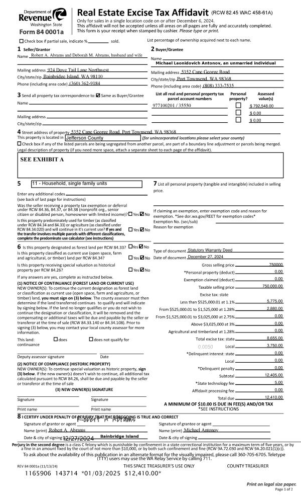 | Mailing Address: | 932 MADISON ST PORT TOWNSEND, WA 98368-4418 | % Ownership: | 100.0000000000% |