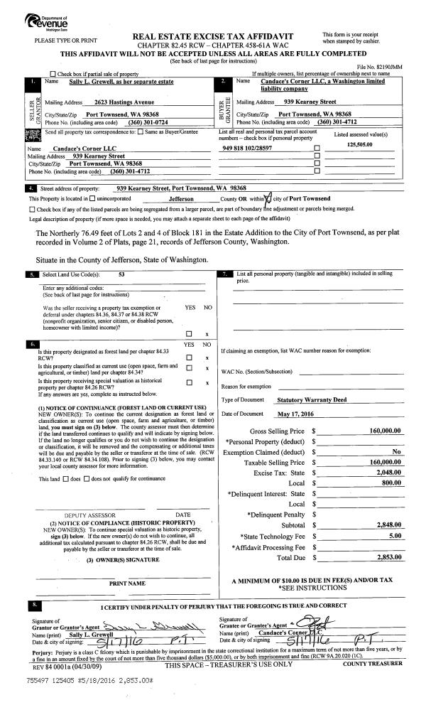 | Mailing Address: | 906 BLAINE ST PORT TOWNSEND, WA 98368-5412 | % Ownership: | 100.0000000000% |