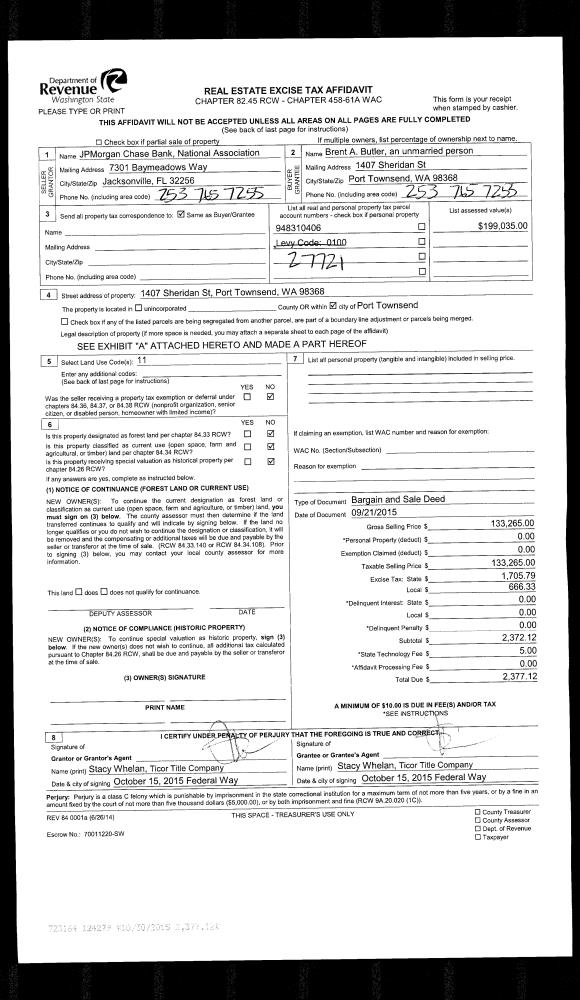 | Mailing Address: | 940 LAWRENCE ST UNIT 304 PORT TOWNSEND, WA 98368-5523 | % Ownership: | 100.0000000000% |