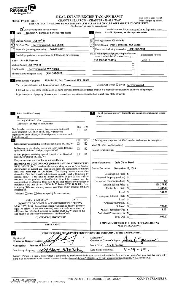 | Mailing Address: | 11 LAUREL ST PORT HADLOCK, WA 98339-9720 | % Ownership: | 100.0000000000% |
