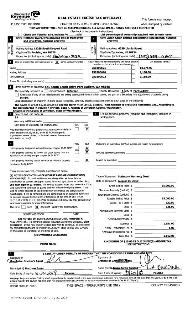 | Mailing Address: | 420 35TH ST PORT TOWNSEND, WA 98368-5026 | % Ownership: | 100.0000000000% |