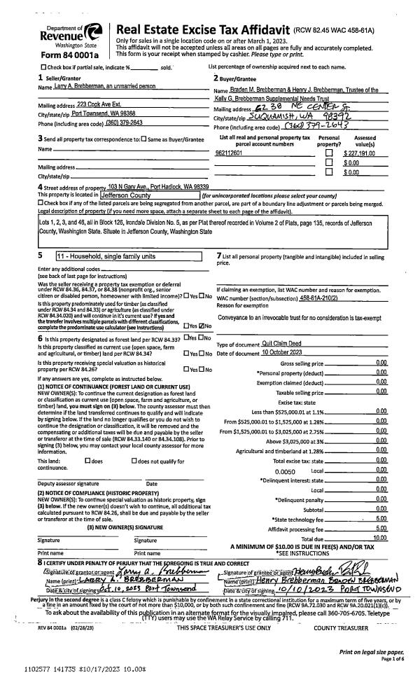 | Property ID: | 39168 | Abbreviated Legal Description: | PORT HADLOCK BLK 1, LOTS 16,17 W/VAC KENNEDY ST ADJ RES#46-99 |