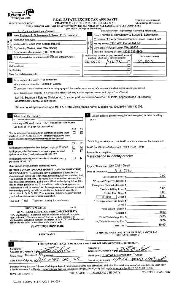 | Mailing Address: | 42 N WATER ST PORT HADLOCK, WA 98339-8706 | % Ownership: | 100.0000000000% |