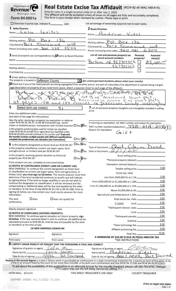 | 3 | 4216-1274S | MH Sites Port Hadlock Heights | 1.0000 | 43560.00 | 0.00 | 0.00 | 22.00 | $231,000 | $0 |