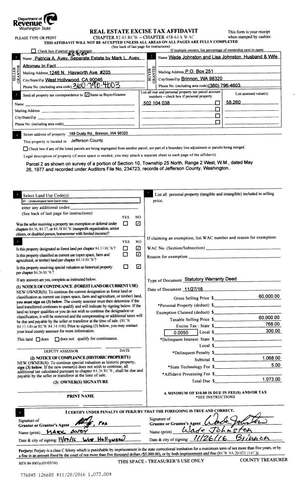 | Mailing Address: | 364 PORT HADLOCK HEIGHTS RD # 364 PORT HADLOCK, WA 98339-8710 | % Ownership: | 100.0000000000% |