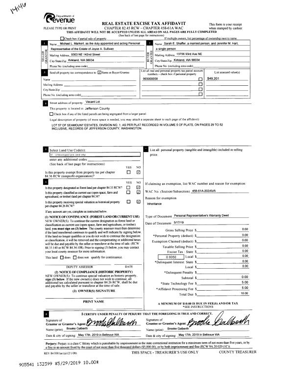 | 1 | 11/12/2019 | MH | Mobile Home | PAUL VENNEMAN | HAROLD D ROGERS | | | $240,000.00 | 133454 | |
