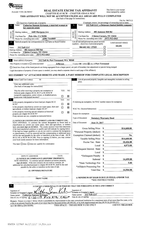 | 1 | 08/26/2022 | SWD | Statutory Warranty Deed | PORT TOWNSEND PLAZA | SHADELANDS LAND PARTNERS LLC | | | $8,810,000.00 | 139801 | |