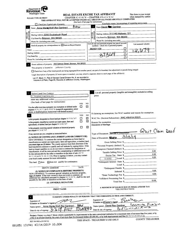 | Mailing Address: | 1110 WILLOW ST PORT TOWNSEND, WA 98368-4100 | % Ownership: | 100.0000000000% |
