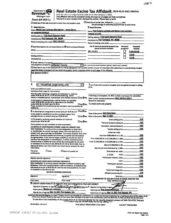 | 1 | 06/23/2025 | SWD | Statutory Warranty Deed | PORT TOWNSEND LLC | METIS GROUP LLC | | | $1,732,500.00 | 144484 | |