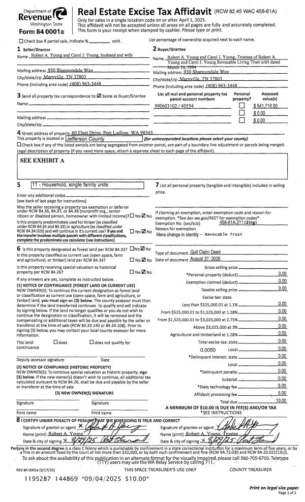 | Mailing Address: | JEINELL K HARPER PO BOX 104 PORT TOWNSEND, WA 98368-0104 | % Ownership: | 100.0000000000% |