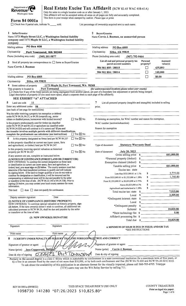 | Mailing Address: | 1432 WASHINGTON ST PORT TOWNSEND, WA 98368-6717 | % Ownership: | 100.0000000000% |