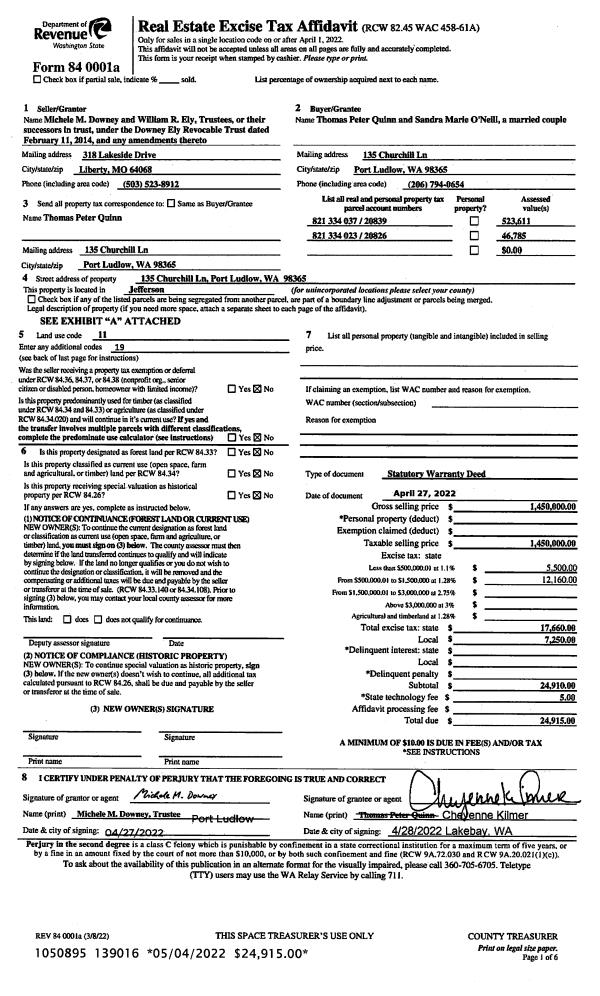| Mailing Address: | 525 BENTON ST PORT TOWNSEND, WA 98368-8103 | % Ownership: | 100.0000000000% |