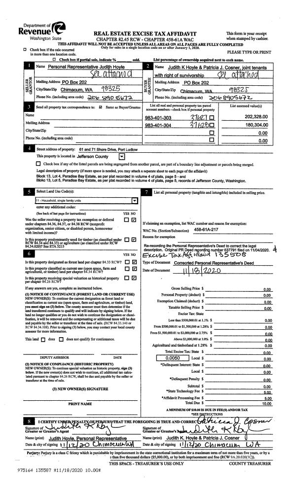 | 4 | 10/07/2020 | QCD | Quit Claim Deed | REGINA A NORTON BECK REVOCABLE TRUST | ROGER T BECK | | | | 135971 | |